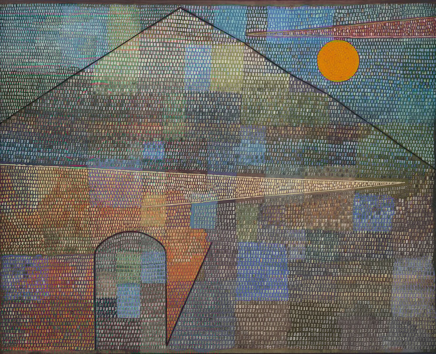 保羅·克利《向著帕納蘇斯山》,1932。成千上萬的小方塊,在顫動中湧現出金字塔。克利說:「畫畫就是帶著一條線去散步。」生命也是——不是建造一座山,而是讓它從每一個當下的顫動中,自然湧現。